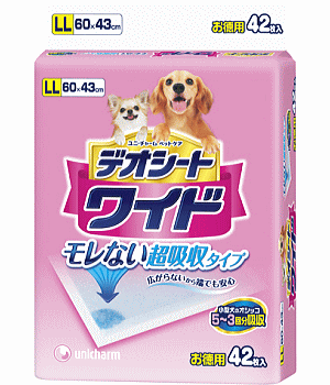\残りわずか!/★数量限定SALE★ ユニチャーム デオシート ワイド 42枚価格: 1,250円レビュー評価: 0.0 レビュー数:0 ◆Saleの為配達日指定不可■内容量:42枚入り■サイズ:約60×43cm■メーカー:ユニ・チャーム ペットケア 株式会社 トイレタリーグッズ ペットシーツ デオシート ワイド 長時間でもモレない、ニオわない超吸収タイプのペットシート! スポット吸収でオシッコをすばやく小さく閉じ込めるので、何回もオシッコができて長時間使えます。 長時間タイプなので、一日に何度も取り替えなくて済み、ゴミの量も軽減し経済的です。 周りを汚さない、新聞紙大60×43cmの安心ワイドサイズ。 小型犬のオシッコ3?5回分をらくらく吸収♪ レギュラーサイズの約2倍の大きさ。 製品サイズとラインナップ *レギ |