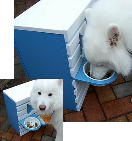 フーボ ブルー価格: 7,900円レビュー評価: 0.0 レビュー数:0 フーボって?フーボの名前の由来はフードボックス。フードボウルスタンドとフードボックスの2つの機能を持ち合わせている便利でかわいいアイテムです。4段階調節可能なスライド式ボウルフーボには大小2つのフードボウルが付属しています。正面のレールにスライドさせて取り付けます。お好みの高さを4段階で選ぶことが出来るので、ペットが無理なく食事することが可能になります。市販のペットボトルが使えます。ドリンク部分は先端がボール状のストッパーがついています。ペロペロなめる姿もかわいく見えます。また、上部のタンク部分は市販の500mlのペットボトル(※)が接続可能。汚れたり、違うカラーのものと取り替えたいと思った時 |